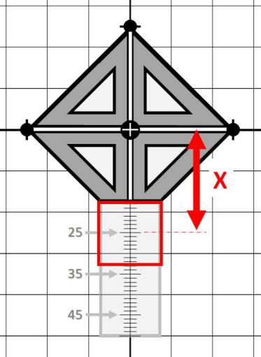 La distance " X " correspond à la moitié de l'entre-axes cannon / lunette que l'on à mesuré précédament.